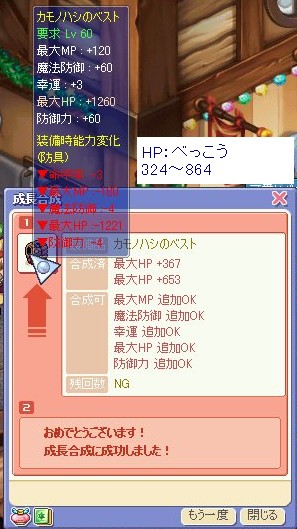 そこで、二次転職を目指すキャラクターがいましたので、そちらに草を送ることにしました。
