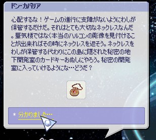 その後、なにやら監視している者がいるといわれ、そのものが出す要求をクリアすると、