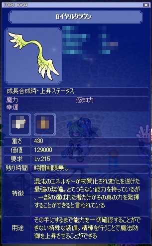 露天で15Mだったので衝動買いしました。ふりゃーか、黄緑色の髪にした獅子のどちらかに装備させてあげたいです。