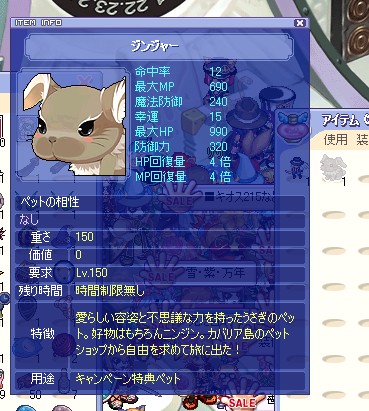 とりあえずバグベアーとスノーキッドを狩り続けた結果。