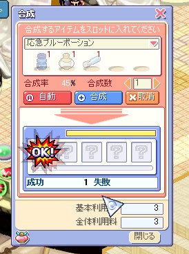 1000個以上合成した気が…。今銀行には応急青が800個ありますからね。どうしろと。
